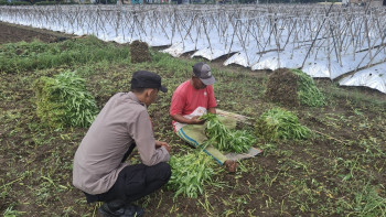 Polsek Wonoayu Dampingi Warga Sumberejo Budidaya Kangkung di Lahan Kosong